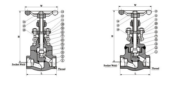 The forged steel globe valves are manufactured according to API, ANSI, ASME standard, for industrial applications. The forged steel globe valves are manufactured with: outside screw and yoke, bolted or welded bonnet , rising stem, integral seat, NPT threaded ends or socked weld ends. The body of the valve is in A105/F6, other materials are available upon request. Hand wheel operated.